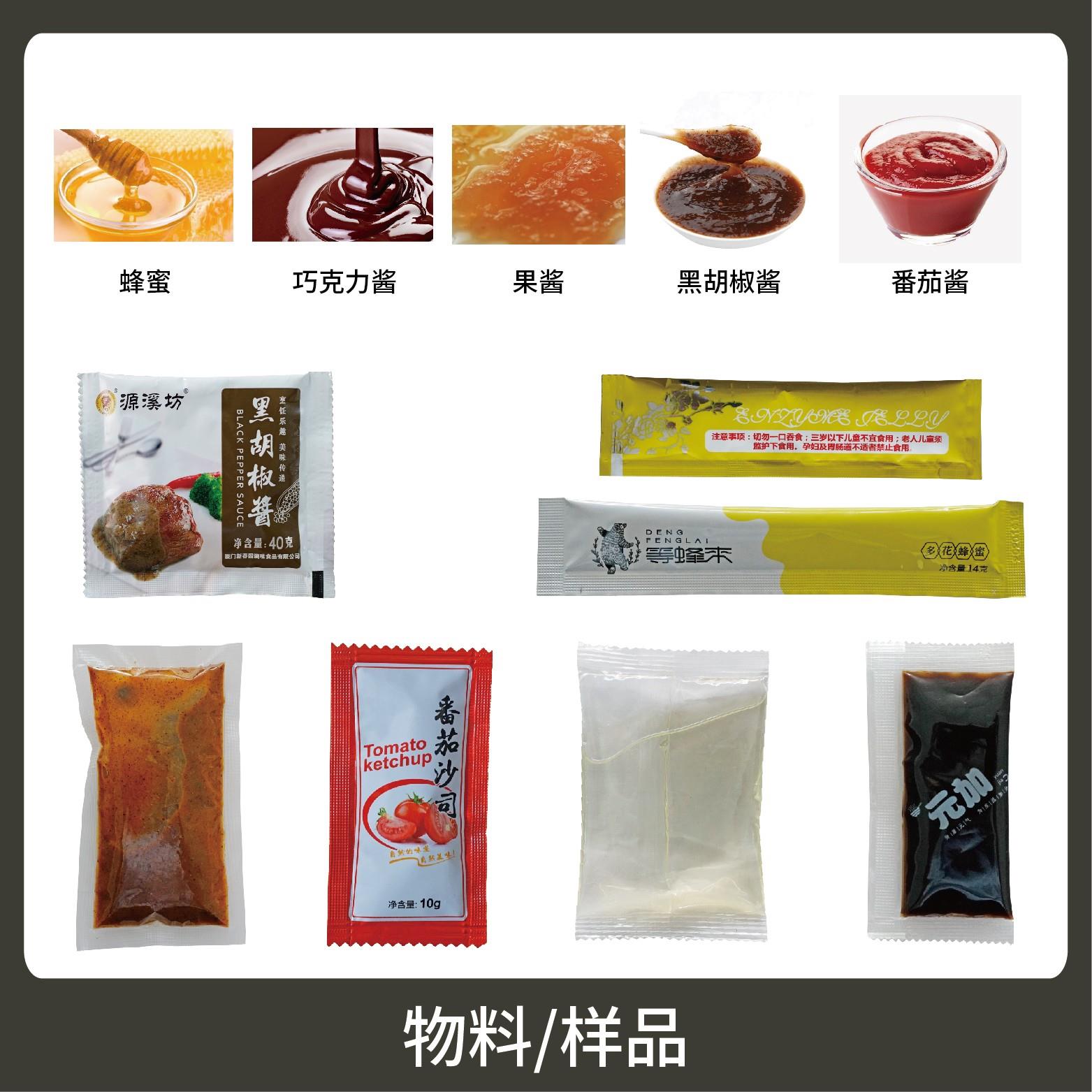 適用于食品行業(yè)顆粒、粉劑、液體、醬料等物料的計(jì)量包裝。
